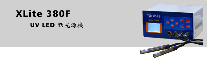 OPAS XLite 380F UV LED點光源UV機主要應用 於UV黏著固化製程。XLite 380F具有低溫,光源壽命長,照度強等優點。非常適合運用於瞬間暫時 固定以及小面積黏著等方面。XLite380F最多可外接4條LED導管,可設定同步或獨立出光。前聚焦鏡備有多種規格可供選擇,更換便利。